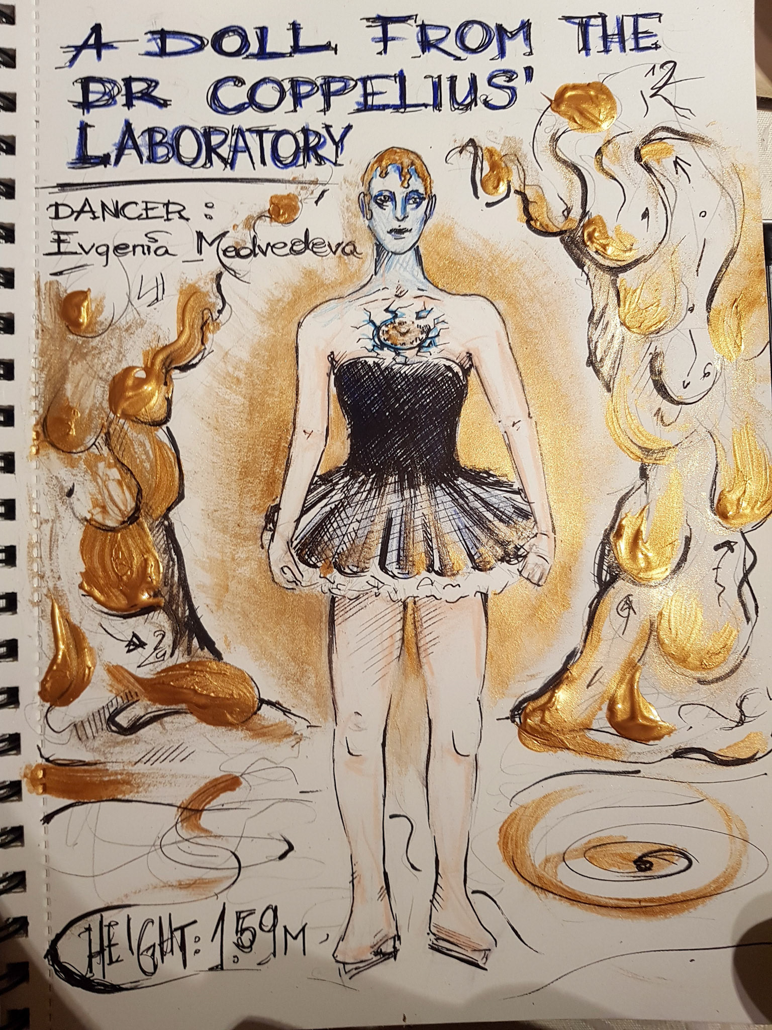 Character designs of the ballet 'Coppelia' for a university practice. For all of the test make-ups I had to use my own face as the project took place during lockdown.